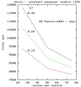 The present goal is to compute an envelop of workmen required to build the bulk of the Khufu pyramid, known as the Great Pyramid, allowing the three unknown parameters to take on all reasonable values. This is naturally a 3-dimensional envelop in terms of the three parameters discussed. I use the "constant manpower" model of the original paper, a computation method that finds the unchanging number of men required to build the pyramid in the known number of years. To achieve this, the construction rate must vary with time, and workers shift from quarrying to transport as the pyramid raises and the difficulty of moving stone increases. For any given pyramid, construction duration, and constant manpower level there is only one (monotonic) construction rate schedule that will meet the requirements.